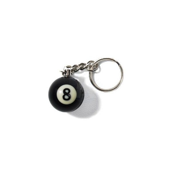 Porte clef 8 ball (key chain eight ball) symbol de la kustom kulture qui représente la libertée car au billard c'est la boule à ne pas rentrer ou à rentrer en dernier sinon on perd la partie, elle est la boule à part, celle à éviter, d'ou son utilisation dans notre contre kulture ! beaucoup reprise aussi dans le monde du Rock'nRoll, rocka billy, psycobilly, rock....