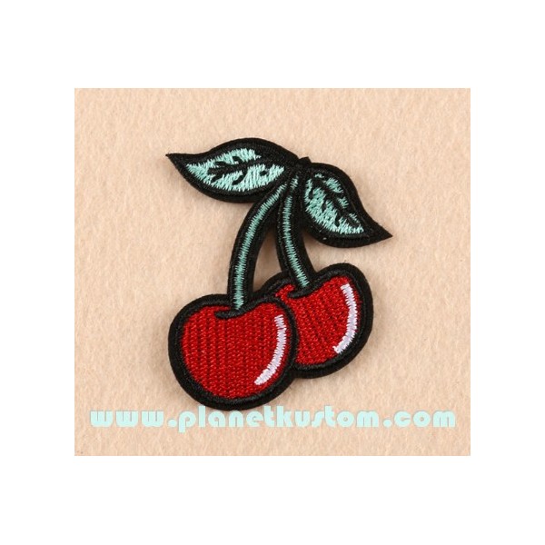 Patch paire de cerises rouge ou red cherry right, pour les pin up ou mini pin up, pour donner un look kustom à vos Jakettes, blousons, teddy, chemises, gilets ou conbinaison de cours ou de travail que vous allez kustomiser !