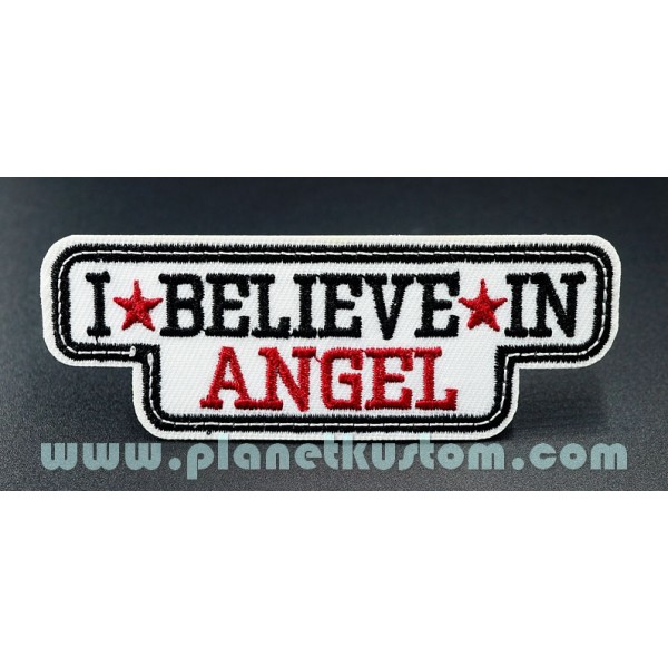 Patch avec les inscriptions "I believe in angel" qui signifi "je croix aux anges" avec son esprit kustom bike et kustom pour donner un look sympa à vos Jakettes, blousons, teddy, chemises, gilets, conbinaisons de travail ou de course, tee-shirt, voir même sur les sièges de auto, camions ou de camping... !