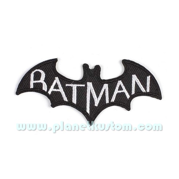 Patch représentant le logo parodié de Batman, avec les inscriptions "Ratman"  le tout en couleur argent sur fond noir, pour donner un look rats, kustom et racing aux Jakettes, blousons, chemises, salopettes, casquettes, chapeaux ou conbinaisons de travail ou de cours ou autres que vous allez kustomiser !