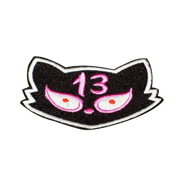 Patch Lucky cat noir et rose avec son 13 tatooé sur le front pour kustomiser vos vestes, blousons, chemise, gilet, tee shirt, sac, catable, teddy ou autre. Donner un petit look pin up oldschool !