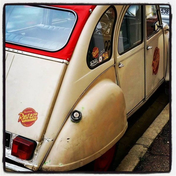 Sticker représantant le logo d'une marque de produit pour traiter les pare choc et la rouille apparaissant dans le Film d'animation "Cars" ici reprix et modifié avec les inscriptions "Kustom", "RUST-EZE", www.planetkustom.com, et "Stickers, patchs, goodies..." !, c'est le parfait autocollant pour customiser votre rats, hoodride, patina, rusty,  voiture, becane, hot rod, rat rod, volks rod, kustom, low rider, woody, moto, chopper, bobber, casque, caisse à outil, servante d'atelier, casier, vestiaire, guitare, glacière ou pourquoi pas votre frigo?