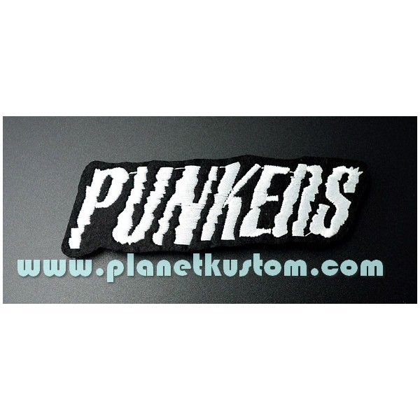 Patch représentant un logo du style musical Punk avec l'einscription "Punkers" en argenté sur fond noir !, qui lui confère un esprit girly et rebel pour donner un look aux Jakettes, blousons, teddys, chemises, gilets ou conbinaisons que vous allez kustomiser !