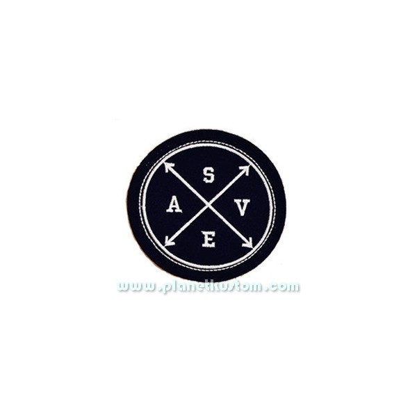 Patch army silver, SAVE (pour secoures) au couleur argent sur fond noir pour donner un esprit rebel, militaire et kustom à vos Jakettes, blousons, teddy, chemises, gilets ou conbinaison de cours ou de travail que vous allez kustomiser !