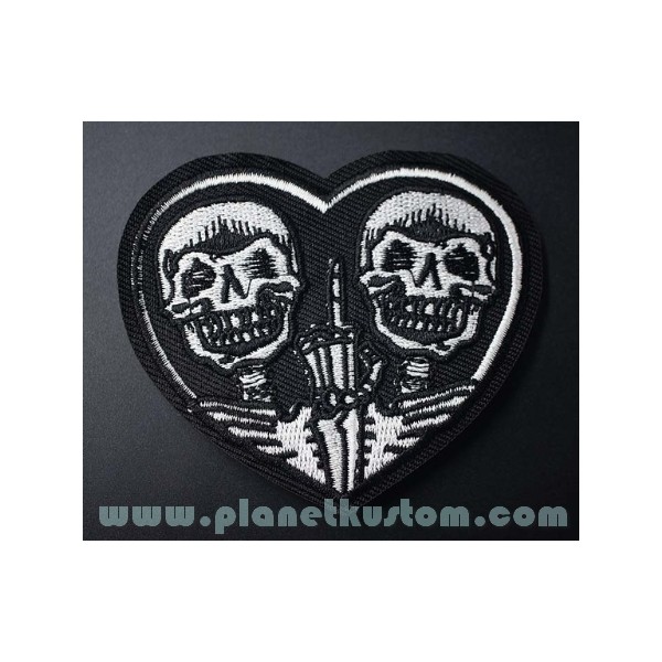 Patch ecusson thermocollant 2 skull on heart hand fuck coeur doigt