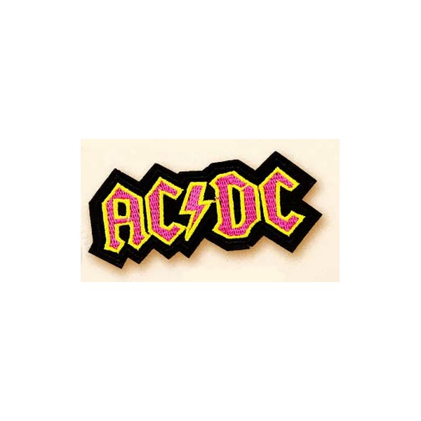 Patch du célébre groupe de hard rock avec son inscription "AC/ DC" inscrit en rose noir bordé de jaune sur fond , celà lui confère un esprit kustom girly pour donner un look agréssif aux Jakettes, blousons, teddys, chemises, gilets ou conbinaisons de travail ou de cours que vous allez kustomiser !