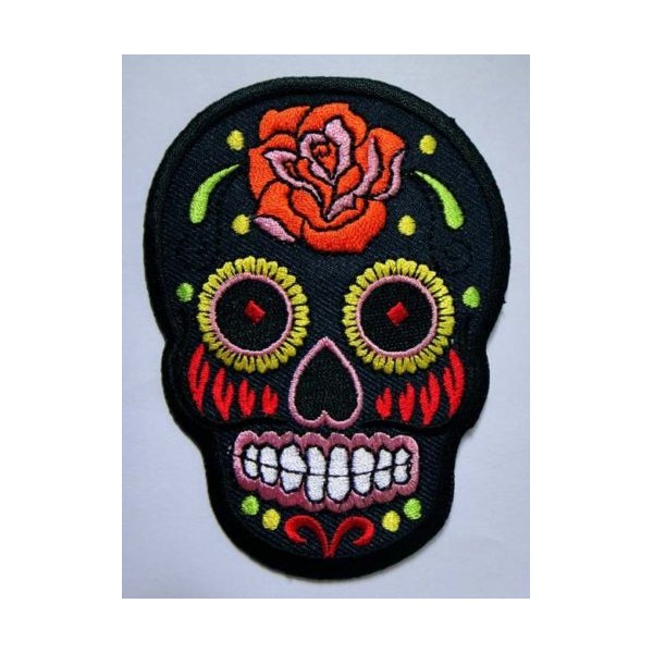 Patch ecusson skull dia de la muerte black day of dead sugar skull
