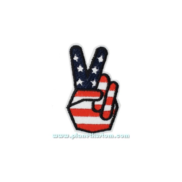 Patch ecusson hand fingers V signe victoire paix salut bikers USA flag