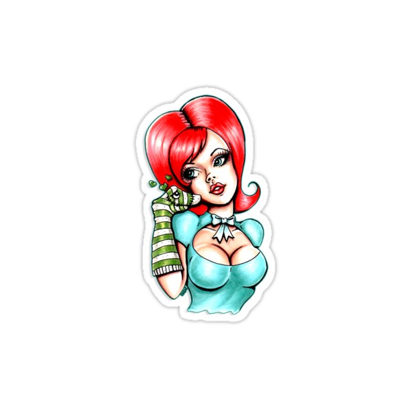 sticker pinup puppet love red hair poupée pin up cartoon 8