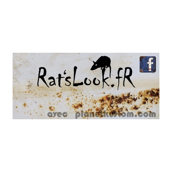 Sticker représantant un graff de la page Facebook "Rat's Look.fr" bien rusty, rats, usé, patina rouillé avec en haut les inscriptions "Rat's Look.fr" avec un rat posé sur le K et en à côté le logo "Facebook" en dessous l'inscription "avec planetkustom.com" (car nous sommes l'un des partenaire de la page)!", c'est le parfait autocollant pour customiser votre rats, hoodride, patina, rusty, voiture, becane, hot rod, rat rod, volks rod, kustom, low rider, woody, moto, chopper, bobber, casque, caisse à outil, servante d'atelier, casier, vestiaire, guitare, glacière ou pourquoi pas votre frigo?