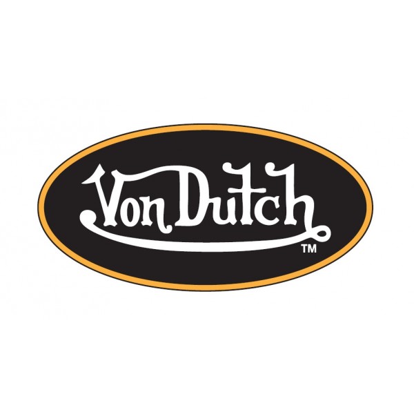Sticker de "Von Dutch"  alias "Kenneth Howard" artiste modialement connu de Kustom Kulture entre autre pour ses talents de Pinstriper et de lettering, représentant un des logos de la marque sa signature ce coup ci en blanc avec l'inscription "Von Dutch" sur fond noir et entourage jaune, le parfait autocollant pour customiser votre voiture, hot rod, rat rod, volks rod, kustom, low rider, woody, moto, chopper, bobber, casque, caisse à outil, servante d'atelier, casier, vestiaire, guitare, glacière ou pourquoi pas votre frigo ?