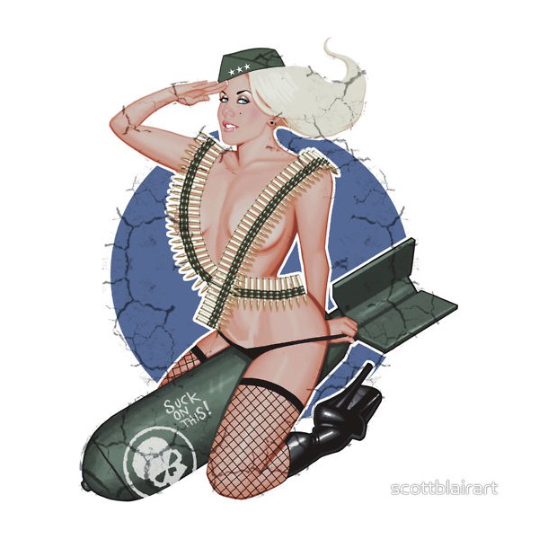 Sticker pinup blonde bombshell army girl skull old pin up 38